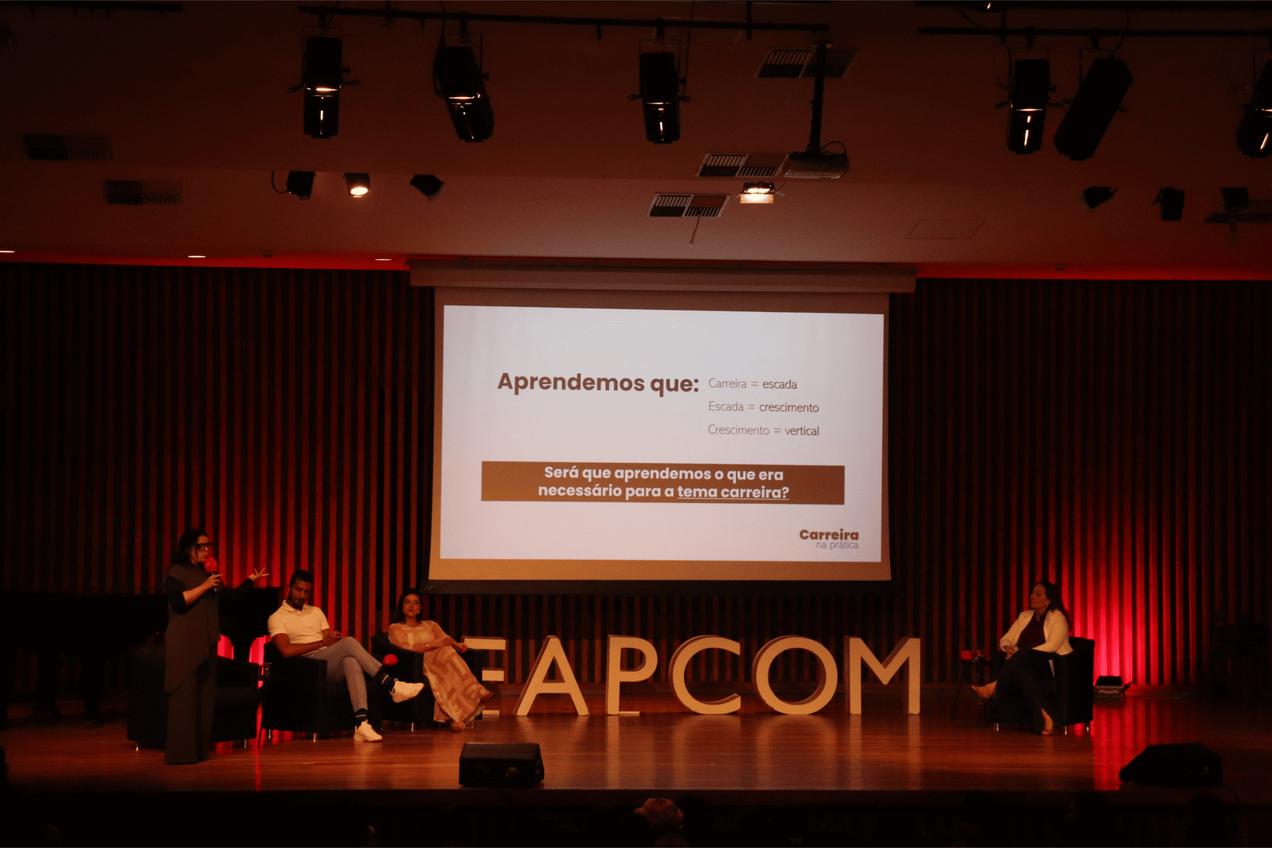 Mediado pela professora Wanessa Scabora, o painel começou com a participação de Daniela Matos, formada em relações públicas e Diretora de Gente & Gestão na ZAMP. que trouxe uma reflexão sobre trajetórias profissionais. Segundo ela, ainda há uma visão equivocada de que carreiras seguem caminhos lineares. “A construção começa antes do primeiro emprego”, afirmou. Para a executiva, mais do que diploma ou talento, o diferencial está na capacidade de gerar valor. Curiosidade, consistência e coragem para aprender aparecem como fatores de crescimento, enquanto passividade, baixa comunicação e resistência a feedbacks limitam o desenvolvimento. “Quem cresce é quem resolve problema”, resumiu.